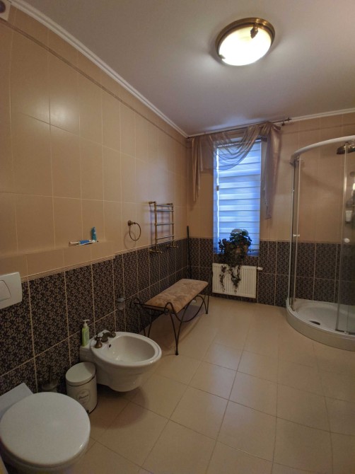 Будинок 3-ярусний: цоколь і 2 поверхи. Стіни з червоної цегли, зовнішнє утеплення. Дах: металочерепиця. Якісний дорогий ремонт, повністю мебльований і обладнаний побутовою технікою.