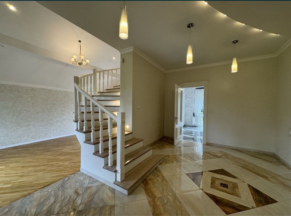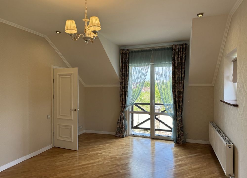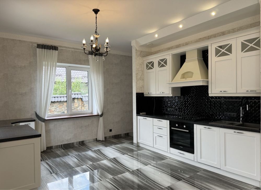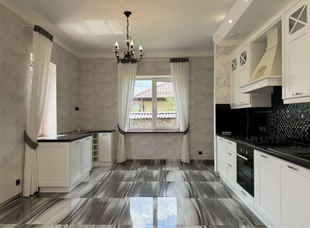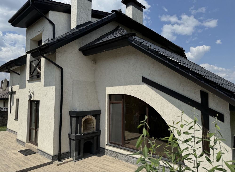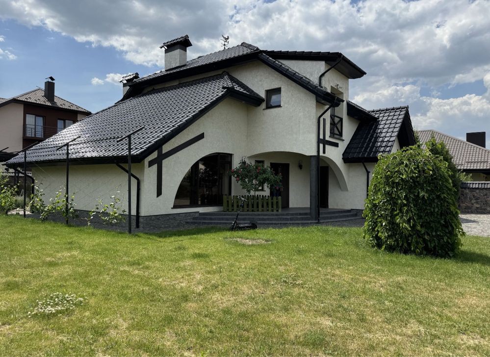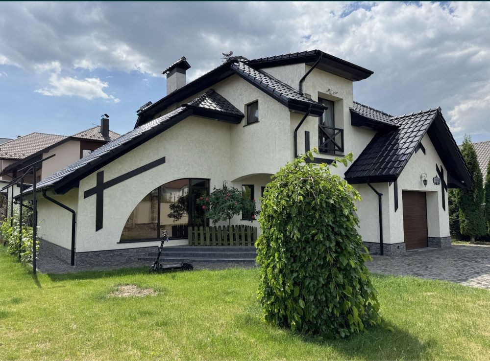 Будинок з готовим ремонтом налічує три спальні, два санвузли, простора кухня та великий зал з каміном. Підігрів підлоги, автономне газове опалення. Спальні з гардеробними, підлога - паркет. Покрівля - натуральна черепиця. Автоматичний полив. Автоматика на всі ворота.