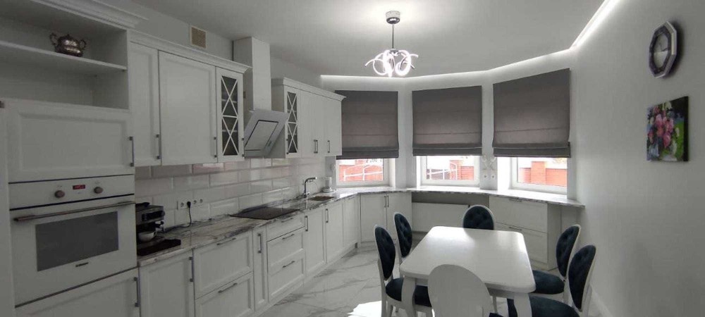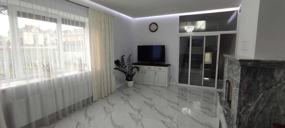 На первом этаже — просторный гараж на две машины, удобная котельная, гостевой санузел и, конечно, сердце дома — кухня. Она уже полностью оборудована встроенной мебелью и всей необходимой бытовой техникой, а большинство мебели в доме остается для вас. И, конечно же, гостиная с уютным камином — идеальное место для семейных вечеров.