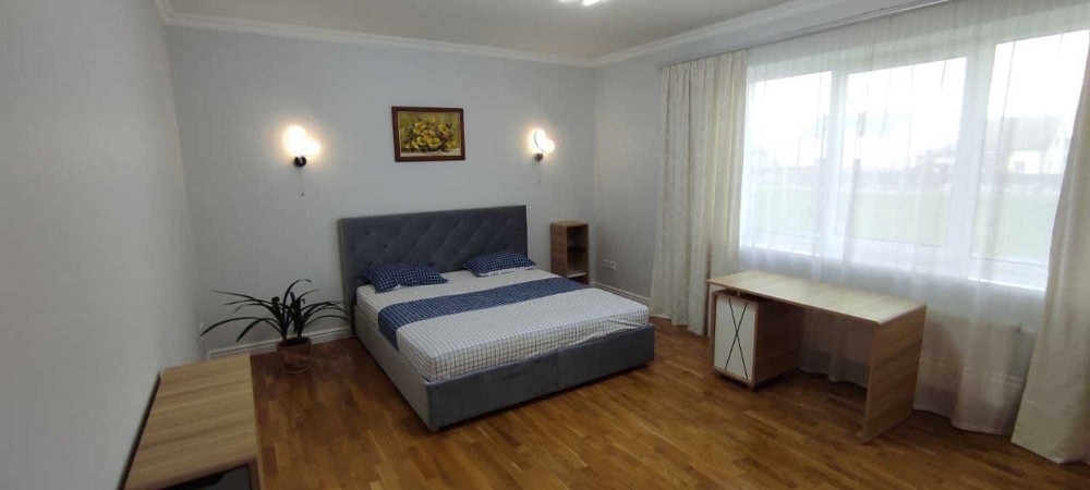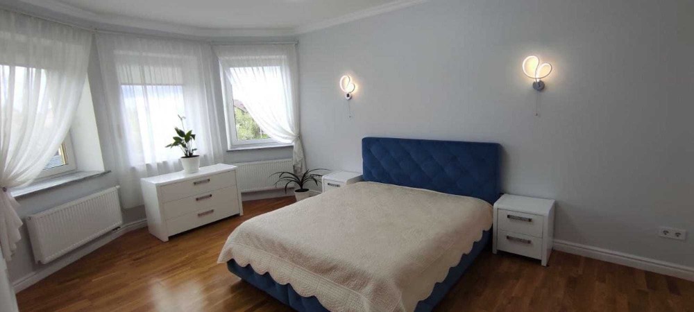 Второй этаж — это зона для отдыха и сна. Здесь расположены две просторные спальни, еще одна уютная гостиная и санузел.