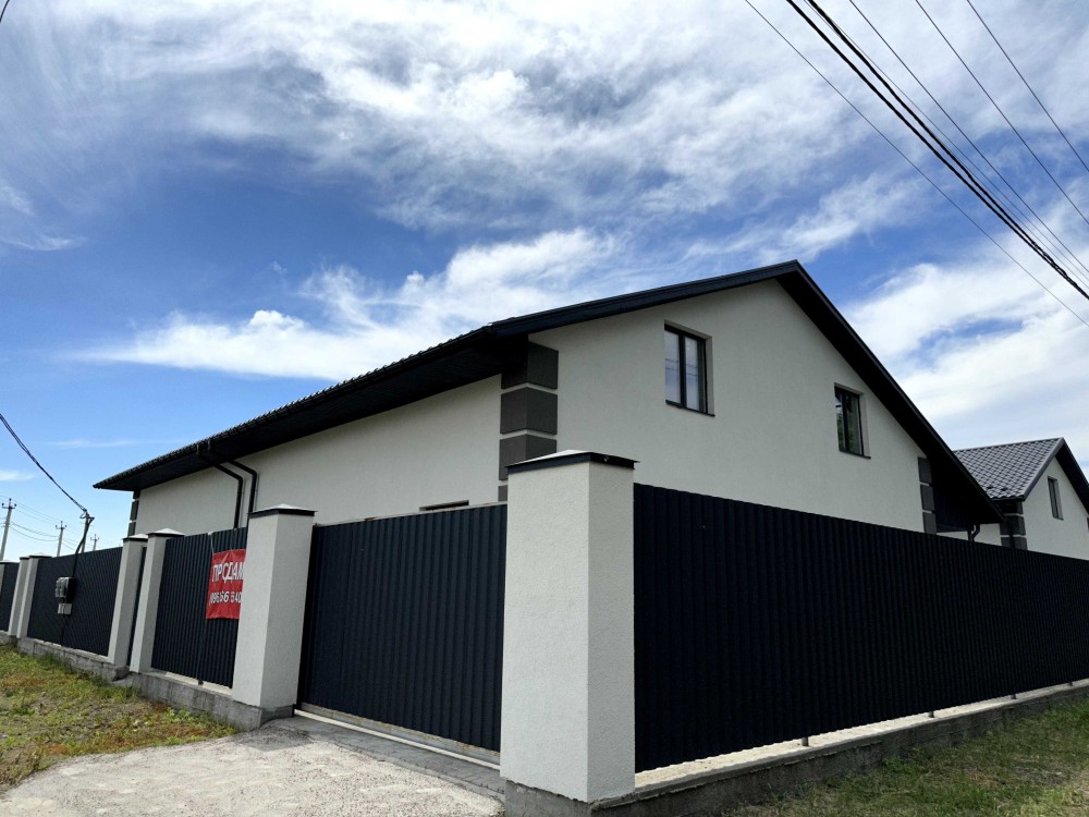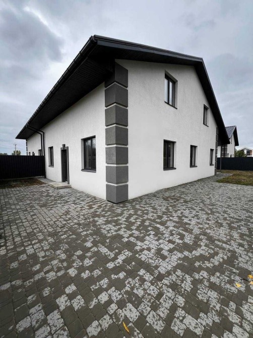 Продаж 2 поверхового будинку дуплексу загальною площею 225 кв. м та ділянкою 3.5 соток. У будинку 3 спальні, 2 санвузли, тех. кімната, вбиральня, кухня-студія з виходом на терасу, панорамні вікна в підлогу, велика мансарда, на території є два місця під авто. Зручний асфальтований під'їзд, вулиця житлова. Поруч озеро, ліс, дитячий майданчик, магазин, зупинка громадського транспорту, 15 хвилин їзди до міста. Закінчення будівництва 2022. Продаж від забудовника