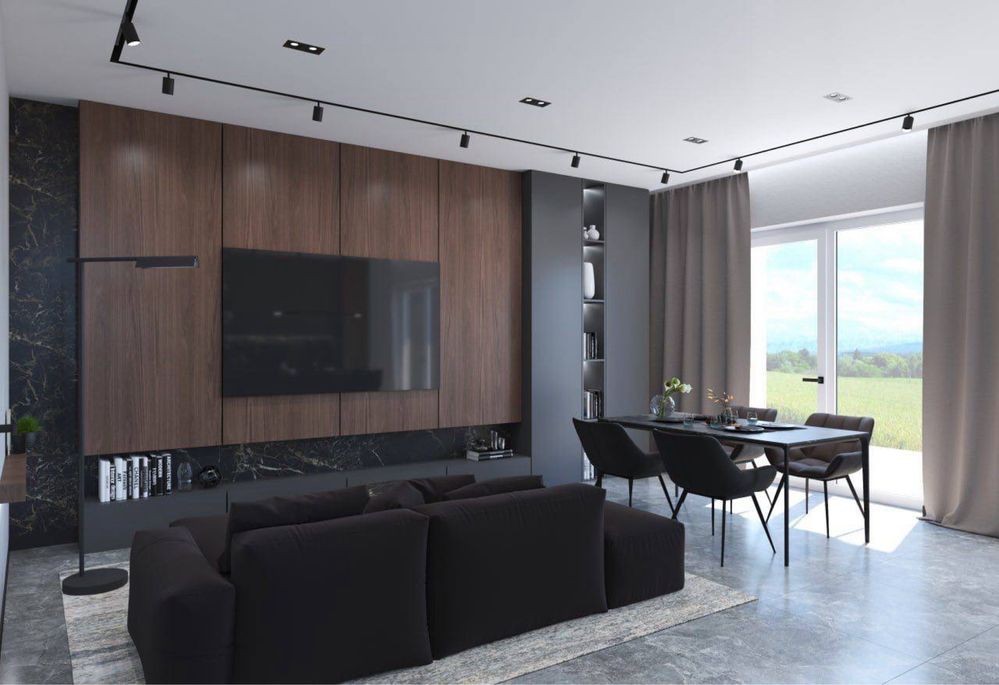 1 поверх: кухня-вітальня з виходом на терасу, простора спальня 16 м2, санвузол та технічне приміщення.
