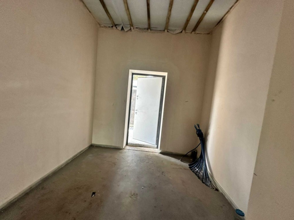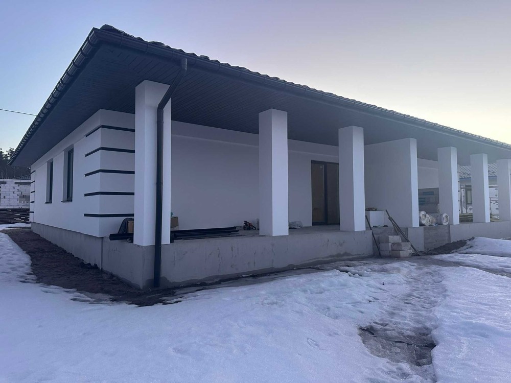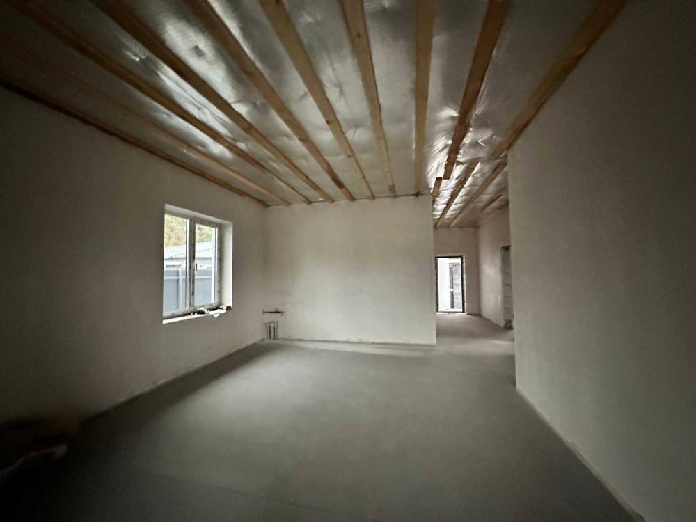 Прибудинкова: виконано озеленення, бруківка на 2 паркомісця, система відкатних автоматичних воріт, вуличне освітлення, дуплекс під чистове оздоблення з розведеними електрикою та сантехнікою (етап виконання чистових робіт).