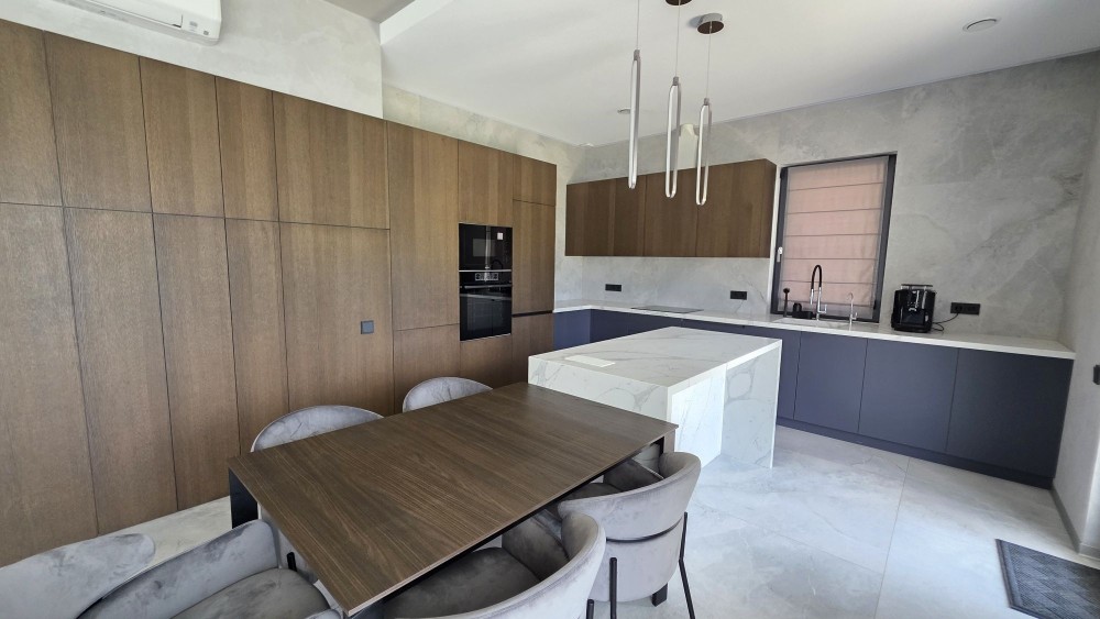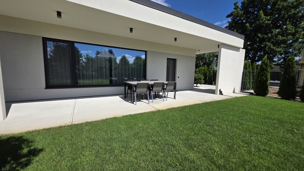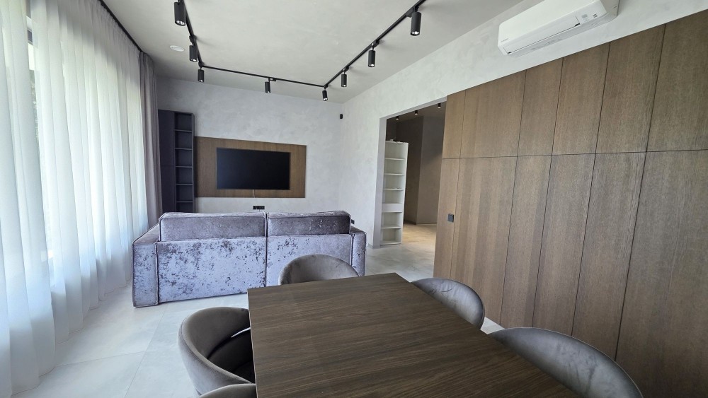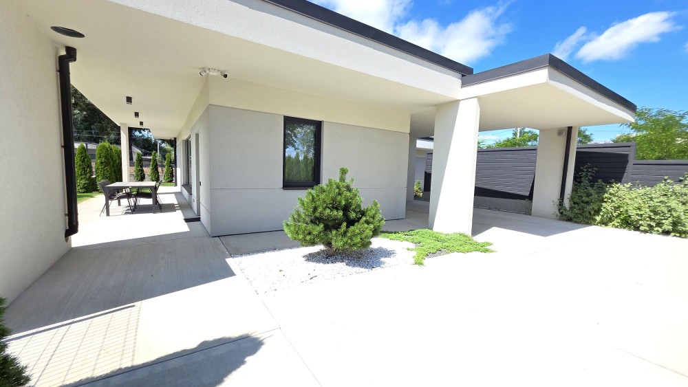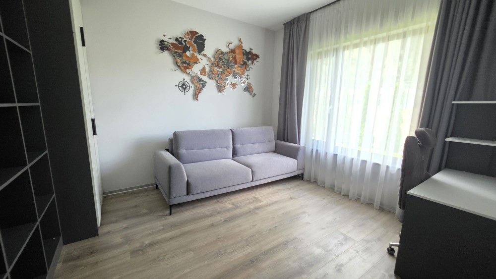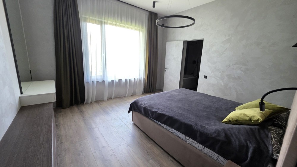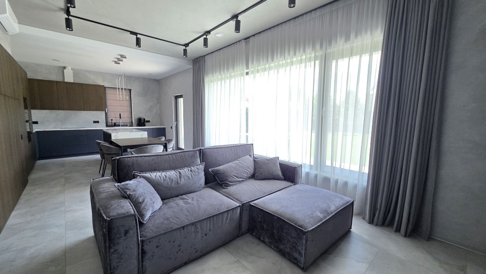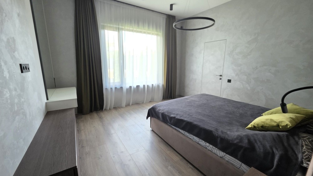кухня-вітальня з виходом на терасу, master-блок з окремим санвузлом та гардеробом, гостьова спальня/кабінет, дитяча спальня, окремий санвузол, котельня. Окрема будівля (хоз приміщення) з інверторною системою, стабілізаторами на кожну фазу та генератором.