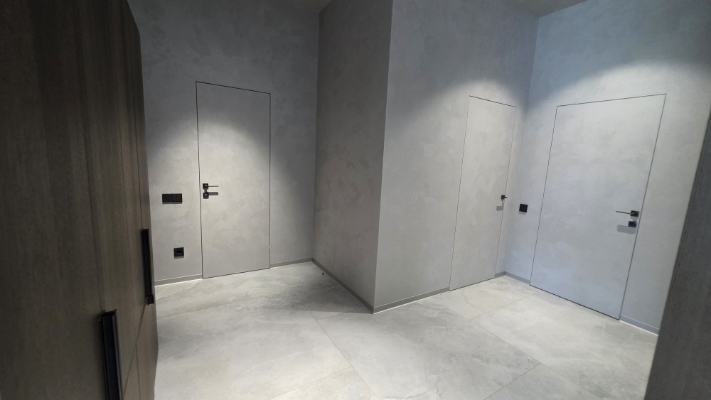 - міжкімнатні двері прихованого монтажу з венеціанською штукатуркою;