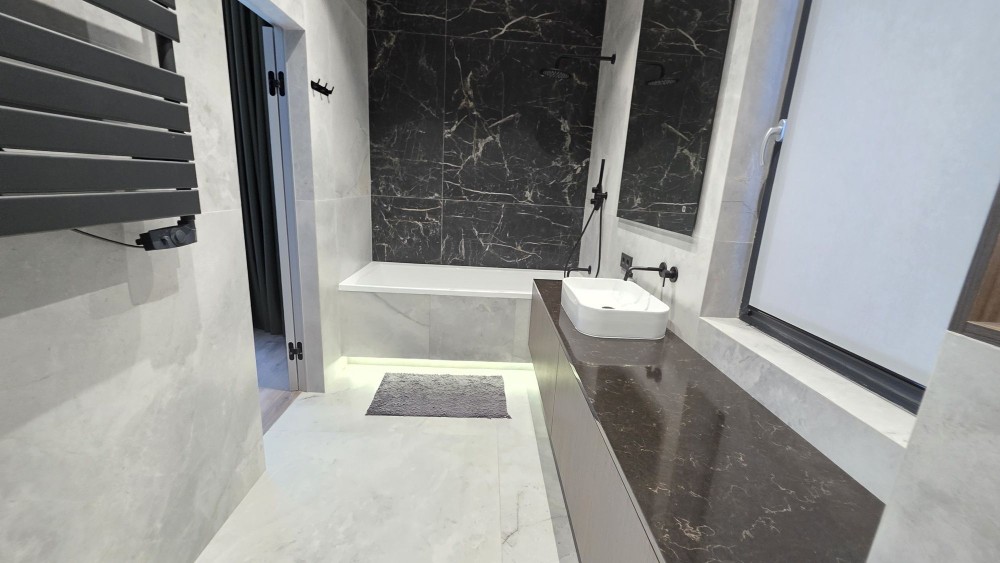 - кухонний острів та стільниці на кухні та в санвузлах зі штучного каменю;