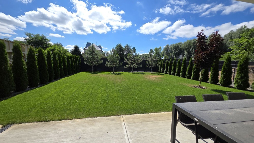 - газон, декоративні насадження (туї по периметру 130 шт, сосни, ялівці блюстар та нана, канадський клен, бонсай, ялинки Коніка, дерен Елегантісіма) та автополив по всій території;