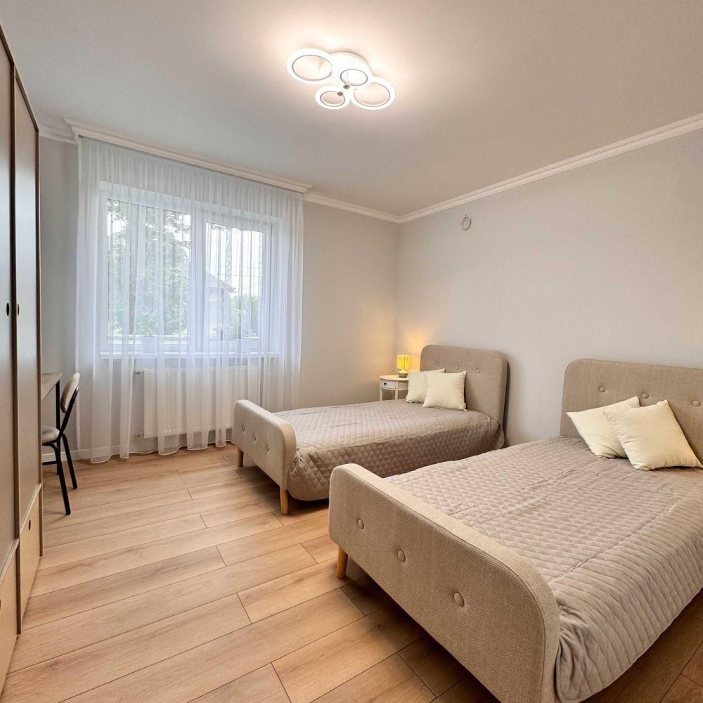 3 окремі спальні, 2 санвузли, простора кухня-їдальня з виходом на терасу. 2 Гардеробні кімнати, вихід на горище, альтанка на території.