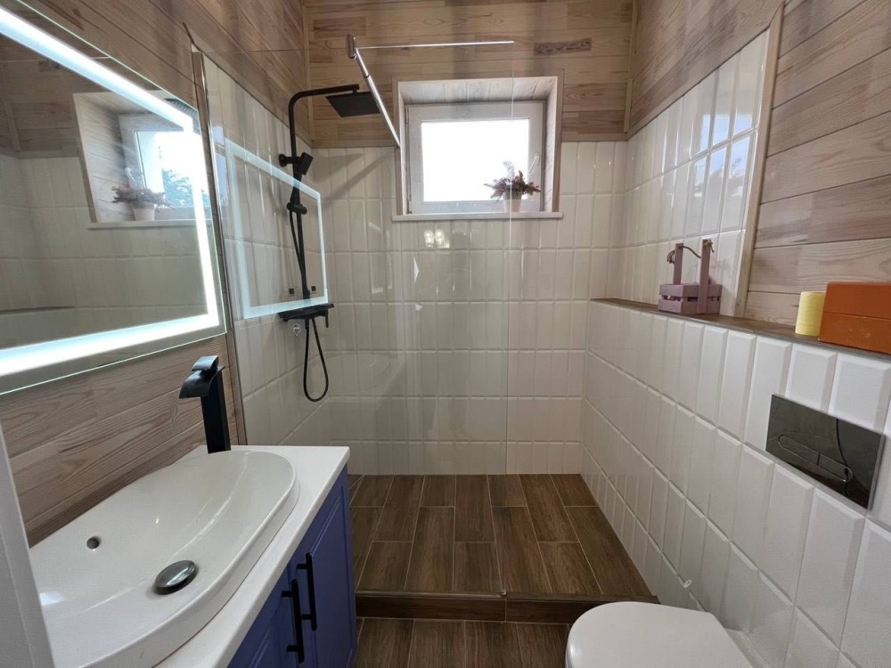 Дуже стильний будинок з ремонтом який має абсолютно все для комфортного життя! Сучасний ремонт, велика площа, гараж, якісні меблі та техніка і все це в оточенні мальовничої природи! Що може бути краще? Будинок загальною площею 250м2 побудований якісно та надійно. Стіни зведені з керамічного блоку, дах вимощений бітумною черепицею. Добре утеплений. Будинок має три рівні. На першому рівні розташований гараж, велика кімната яка може бути використана під спортзал, чи будь що інше за вашим бажанням, комора та технічне приміщення. В сучасних реаліях перший рівень можна використовувати як укриття. На другому рівні розташована кухня-їдальня , вітальня, санвузол з душовою кабіною та вихід на терасу. На третьому рівні знаходяться три просторі кімнати з виходами на балкон та санвузол з ванною. Система опалення в будинку електрична. Встановлений електричний котел і розведена тепла підлога по всій площі.