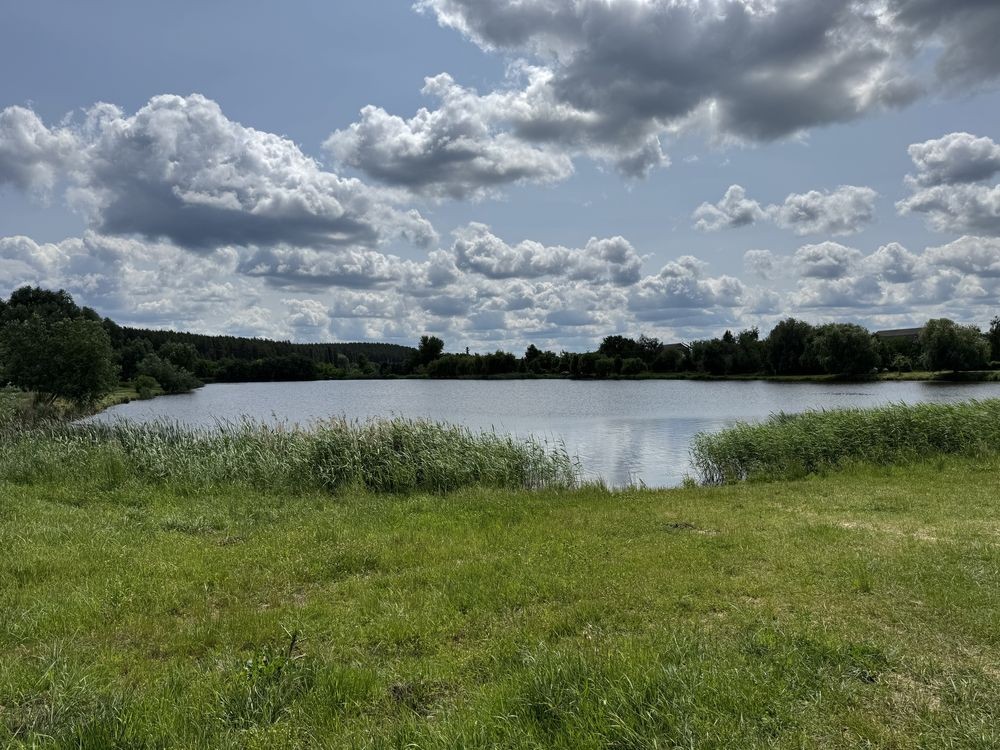 Поряд ліс, озеро, зони для відпочинку.
