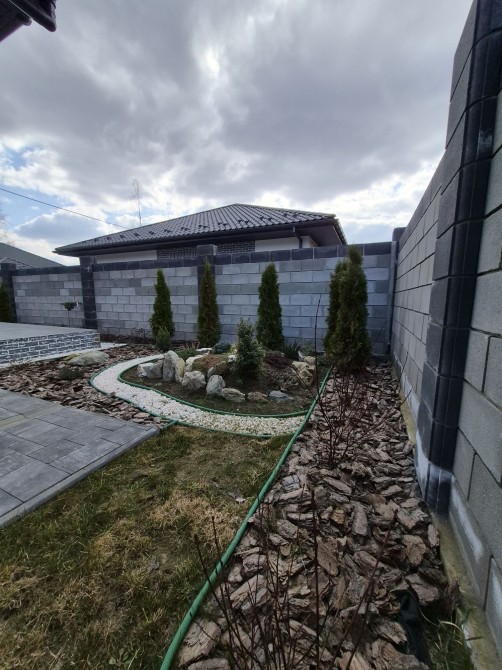 На території передбачено паркомісце для двох автомобілів, встановлені автоматичні відкатні ворота, хвіртка з електрозамком. Ділянка озеленена, облаштована тераса для відпочинку.