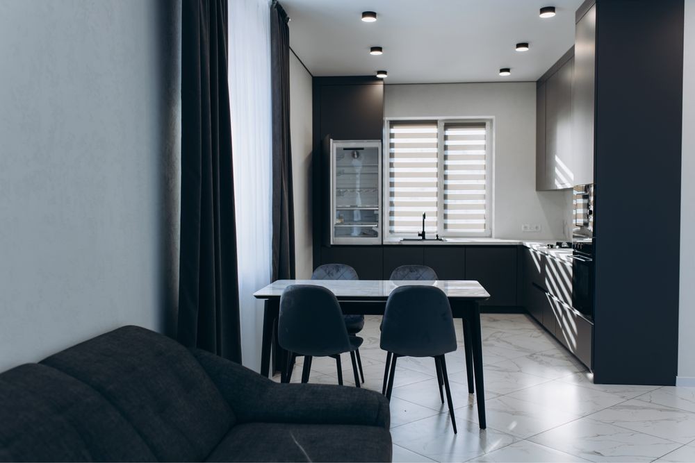 Кухня вітальня оснащена всією необхідною технікою.