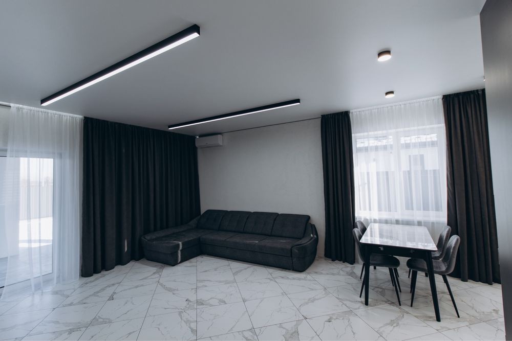 Ремонт виконаний в світлих тонах.