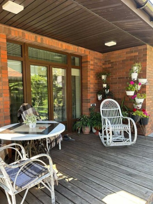 Свіжий ремонт, якісні меблі, техніка та сантехніка, 3 спальні, 2 санвузла, кухня-вітальня 41 м2, 2 холодні кладові, тераса з модрини, система рекуперації повітря та очистки води, кондиціонер, відеоспостереження, сигналізація, тротуарна плитка граніт, автополив по усій ділянці.