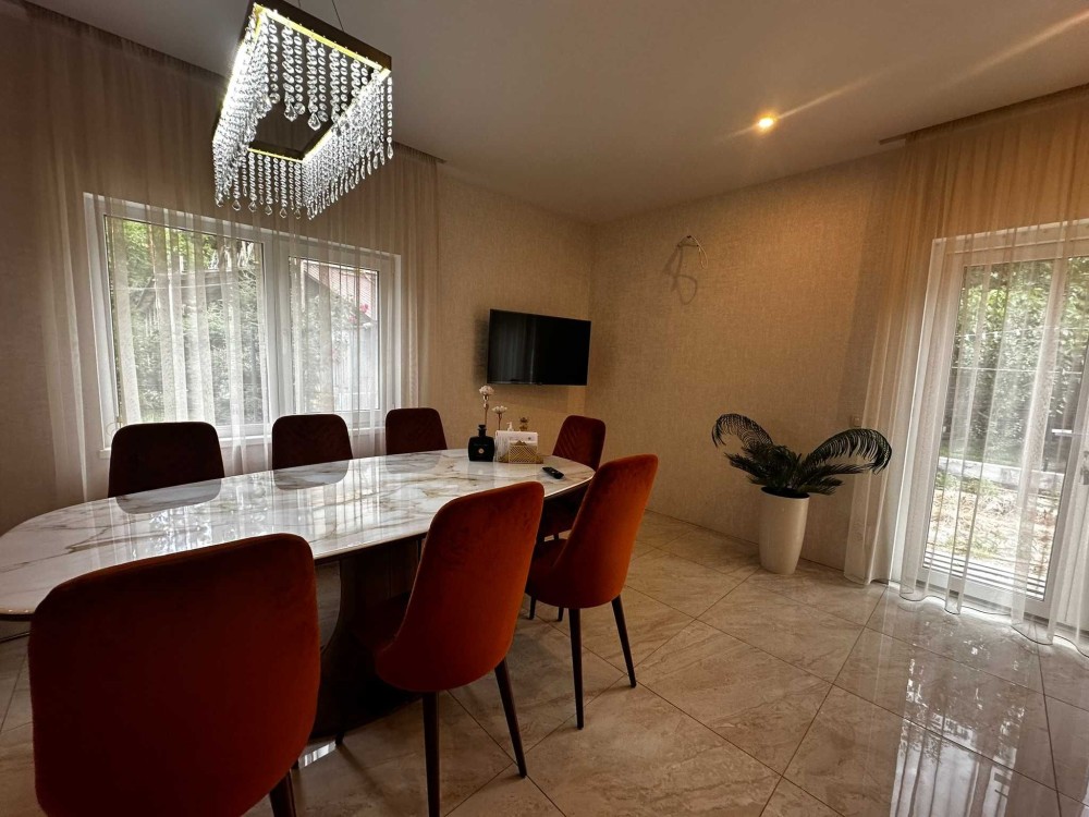 Пропонується до продажу новий двоповерховий котедж у мальовничому селі Яблуниця, одному з найпопулярніших туристичних напрямків Карпат. Локація — ідеальне поєднання природи, тиші та зручної інфраструктури. Розташування: біля центральної траси Івано-Франківськ – Рахів поруч із межею Закарпатської області 7 км до Буковелю 500 м до витягу «Коза» панорамні види на Говерлу, Яблуницький перевал, ліси та гірські річки З вікон будинку відкриваються захопливі карпатські пейзажі — місце, де справді панує тиша, спокій і відчуття безпеки. Про будинок: збудований у 2023 році, практично новий дерев’яна конструкція стіни — сендвіч-панелі з утепленням (пінопласт + мінеральна вата + гідроізоляція) зовнішнє облицювання — металевий сайдинг будинок дуже теплий та енергоефективний Котедж складається з двох автономних половин, кожна з окремим входом: перша половина — повністю готова до проживання: виконаний ремонт, меблі, техніка, все необхідне друга половина — на стадії внутрішніх робіт (усі матеріали в наявності) Після завершення ремонту вартість об’єкта суттєво зросте — вигідна можливість купівлі вже зараз. Комунікації та зручності: електричне опалення додатково — газовий обігрівач генератор повністю придатний для цілорічного проживання Земельна ділянка: 5 соток, приватизована, документи оформлені на території: альтанка мангал велика господарська споруда зручний заїзд місце для паркування кількох автомобілів Формат використання: Котедж ідеально підходить: для комфортного проживання 1–4 родин як готовий інвестиційний проєкт — міні-готель або котедж для туристів із стабільним доходом Інфраструктура поруч: продуктовий магазин квітковий магазин сауна на дровах кафе авто мийка