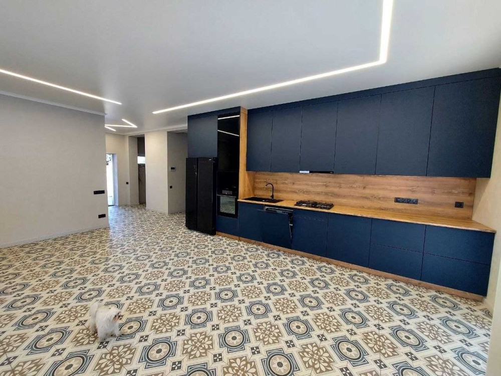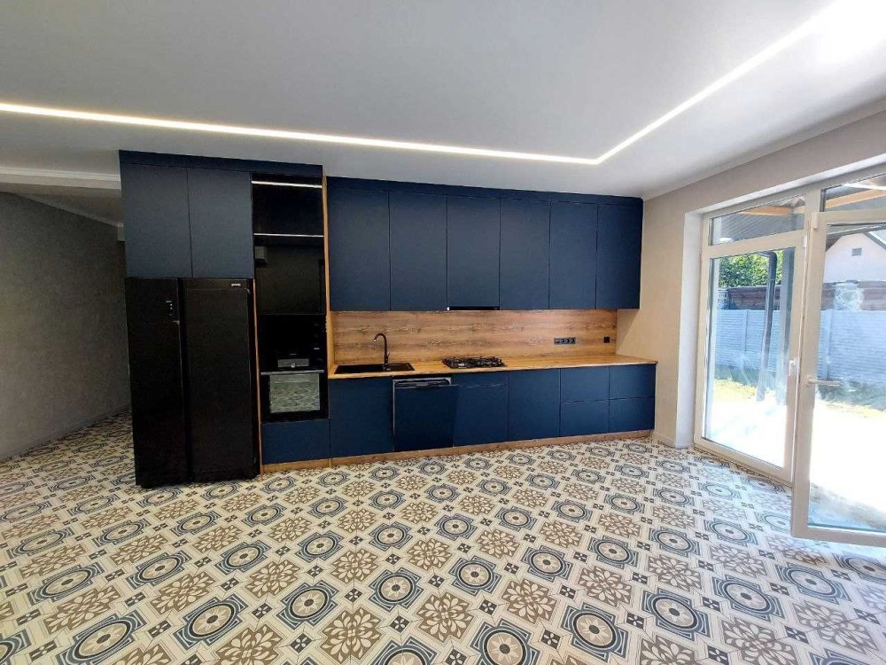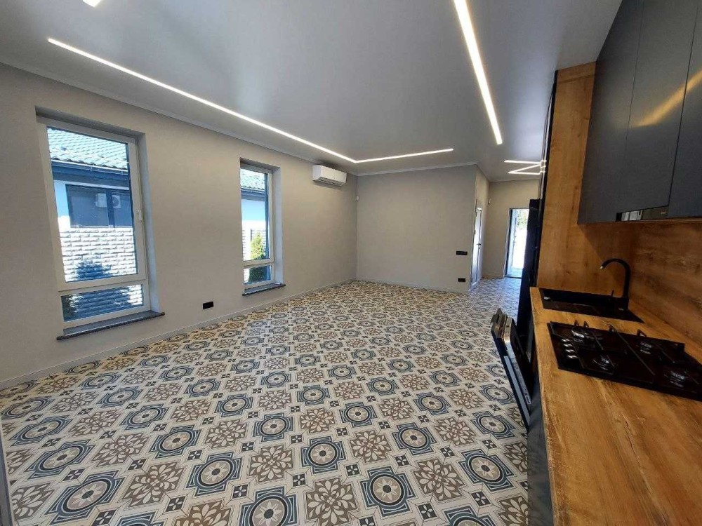Велика кухня вітальня 35 м2 з виходом на терасу 15 м2, вкритою керамічною плиткою.