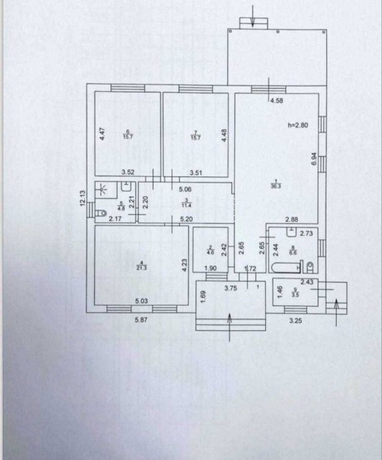 три великі спальні- 15,7м2, 15,7м2, 21,3м2.