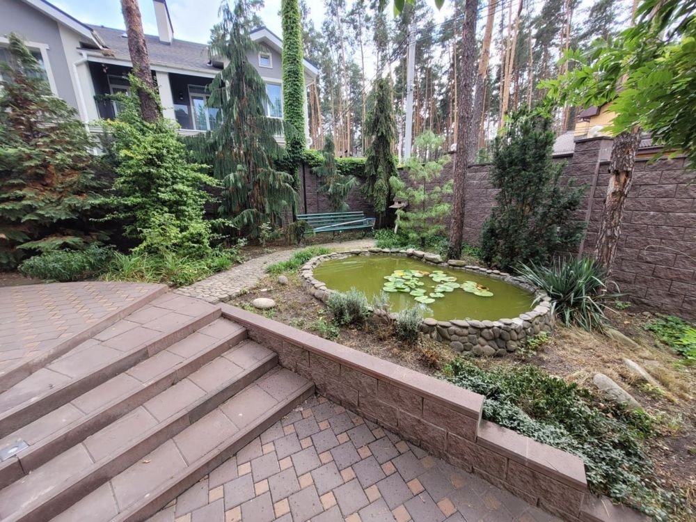 На території тераса з зоною відпочинку та барбекю, власний ставочок з рибками, до будинку прибудоване приміщення: критий басейн з зоною відпочинку.