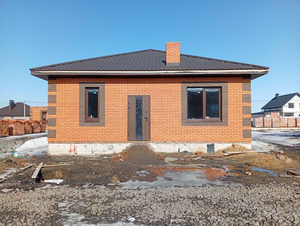 Терміновий продаж 2-о поверхового просторого і якісно-збудованого за індивідуальним архітектурним проектом, будинку площею 176 м² в с. Пухівка в Броварському р-ні. Будинок розташований в престижному закритому товаристві з охороною. Будинок побудований з червоної цегли, утеплений мінеральною ватою ватой ROCKWOLL 80 мм, фасад з цегли Фагот, кровля - фінська бітумна черепиця "katepal", двокамерні вікна "Века" з автоматичними захисними ролетами кольору золотий дуб, декоративна штукатурка, іспанская плитка, дуб паркет-дошка, імпортна сантехніка. Ділянка розміром 14 соток має правильну прямокутну форму, за проектом розміщено індивідуальний житловий 2-о поверховий будинок та гараж на 2 авто (53м2). Планування будинку забезпечує комфортне проживання великої родини. Планування: 5 спален, кухня, вітальня, 2 с/в. Якісний ремонт, дерев'яні меблі, кухонний гарнітур з натурального дубу. Під’їзд до будинка асфальтованою освітленою дорогою, глухий кут вулиці з виходом на піщаний пляж р. Десна, поруч ліс, озера, ресторан, магазин, зупинка громадського транспорту та бази відпочинку. Живописне, красиве місце, чисте повітря, для постійного проживання, все навколо забудовано. Інженерія та комунікації: Електрика — Виділена лінія електроенергії на 20кВт. • Газовый двоконтурний котел • Електрокотел • Діючий камін • Бойлер • Система очищення води • Кондиціонери • Підключено інтернет • Автоматичні ролети на вікнах. • Скважина • Каналізація — два переливні дренажні септики • Автополив • Сигналізація та відеоспостереження • Автоматичні ворота. Будинок продається з меблями та технікою. 218000 у. о. Можливий торг!