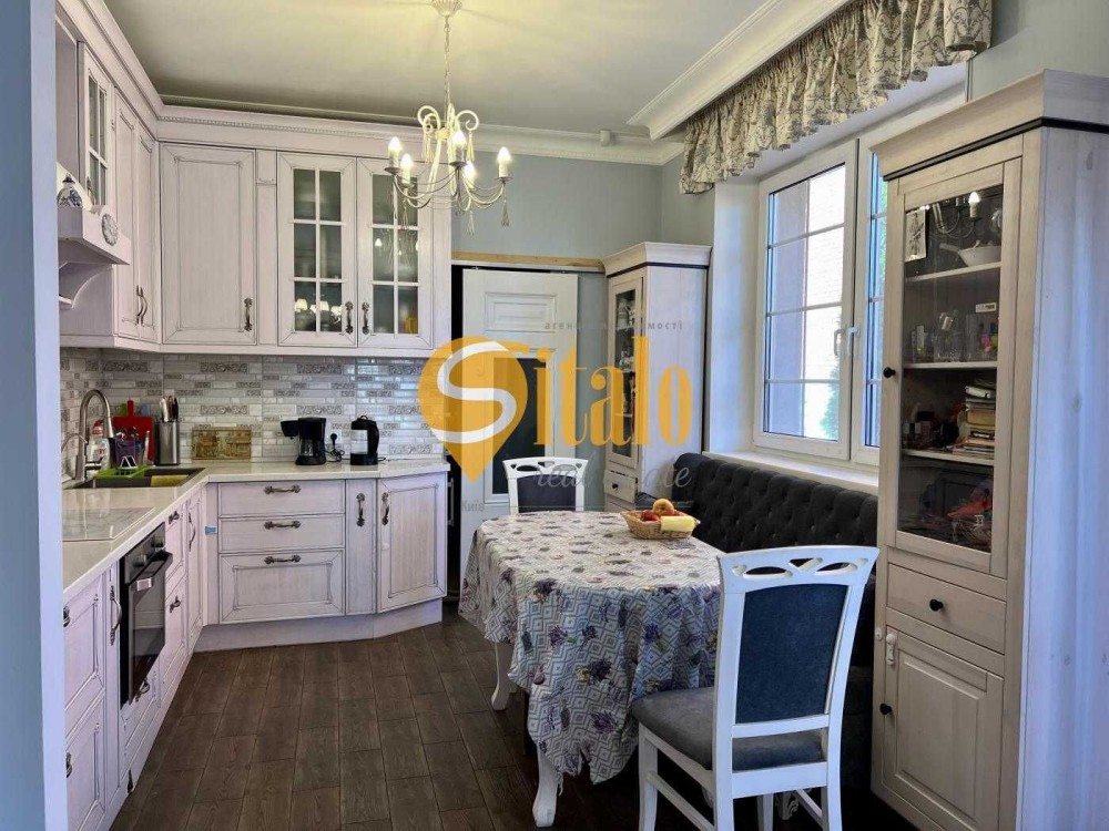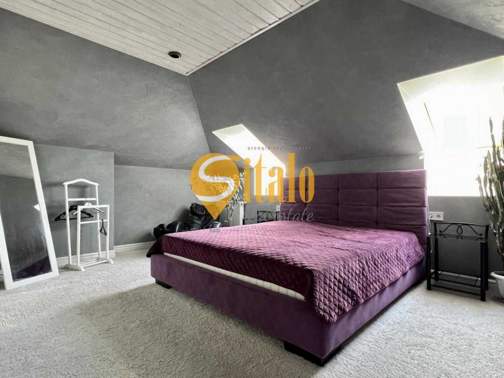 Продається новий індивідуальний житловий будинок котеджного типу загальною площею 131 м.кв. під чистове оздоблення, розташований в селі Крячки Фастівського (колишнього Васильківського) району Київської області на території нового житлового масиву із сучасною котеджною забудовою, що перебуває на відстані 20 км від станції метро «Теремки» міста Києва та за 1,5 км від міста Васильків. Житловий будинок складається з першого та мансардного поверхів. Загальна площа будинку із допоміжними спорудами становить 173,1 м.кв., з яких: а) площа будинку ‒ 131,0 м.кв., у тому числі житлова (основна) ‒ 94,1 м.кв. та допоміжна (підсобна) ‒ 39,6 м.кв.; б) площа тераси – 23,1 м.кв.; в) площа трьох балконів – 13,4 м.кв. (5,8 + 4,9 +2,7 м.кв.); площа ґанку – 5,6 м.кв. Котедж вміщує в собі 5 (п’ять) доволі просторих кімнат, 2 (два) санвузли (на кожному із поверхів), 1 (одне) технічне приміщення (котельня або бойлерна), 2 (два) коридори, 1 (одну) вітальню із виділеною еркером обідньою зоною, що поєднана з кухнею. Із вітальні є окремий вихід на велику терасу, з якої відкривається затишний вигляд на внутрішній двір. Кожна з трьох мансардних кімнат має окремий вихід на балкон. Над усією площею мансардного поверху розташоване містке горищне приміщення. Будинок приєднаний до електропостачання потужністю ‒ 12кВт (3 окремих фази). Має свердловину глибиною 55 метрів із фактичним дебітом (спроможною потужністю) ‒ 2,5 м.куб./год. та каналізацію септик з переливом на 11 м.куб. На усій площі першого (крім житлової кімнати) та у санвузлі мансардного поверхів встановлена система водяної теплої підлоги фірми «Rehau». По котеджу розведені: опалення, водопостачання і каналізація. В будинку передбачена можливість встановлення камінної топки, а також приєднання котеджу до газорозподільної мережі та всесвітньої мережі Інтернет. Індивідуальний житловий будинок розташований на земельній ділянці площею 0,075га з цільовим призначенням – (02.01) для будівництва і обслуговування житлового будинку, господарських будівель і споруд (присадибна ділянка). Під житловою забудовою перебуває 0,0115га земельної ділянки, решта 0,0635га займає просторий двір. Кадастровий номер земельної ділянки: 3221487004:03:006:0328. Земельна ділянка огороджена парканом із монолітного фундаменту, що опорядковане металевим штахетом із обох боків та металевим профілем з тильної та фасадної сторін. Заїзд у двір має відкатні ворота. На території двору (перед будинком) облаштоване загальне паркомісце на 2 (два) автомобіля, решта двору засіяне газонною травою. Котедж побудований з якісних матеріалів за проектом європейського архітектурного бюро. Так, фундамент, перекриття та міжповерхові сходи ‒ монолітні. Стіни будинку збудовані з газоблоку AEROC D500 (товщиною 300мм), що утеплений пінопластом 100мм. Внутрішні міжкімнатні перегородки виконані із цегли. Дах ‒ металочерепиця фірми «Ruukki», що утеплений мінераловатними плитами загальною товщиною 200мм. Вікна вироблені з профілю фірми «Rehau» серії EVRO 70. Фасад котеджу покритий акриловою штукатуркою. Будинок за усім периметром має вимощення шириною 0,9 метри, що облаштоване фігурними елементами мощення (ФЕМ). Зручне ергономічне планування будинку, а також наявність високих стель обох поверхів дає можливість відчувати себе вільно і затишно. Завдяки правильному утепленню зовнішніх стін будинку, у ньому прохолодно влітку та тепло вз