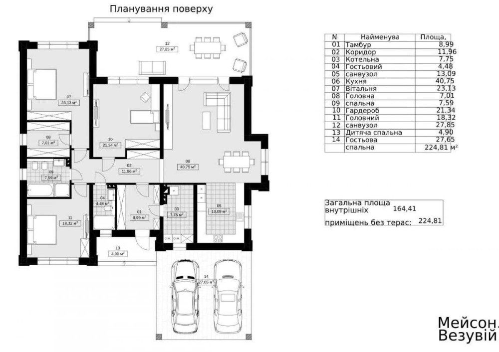 • Загальна площа будинку – 225 м²