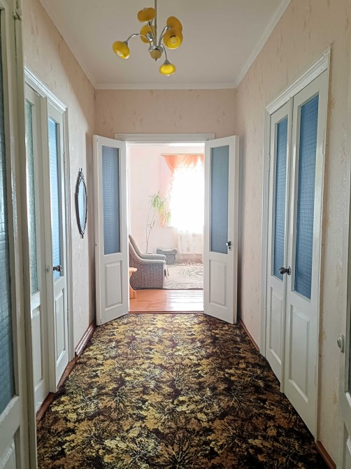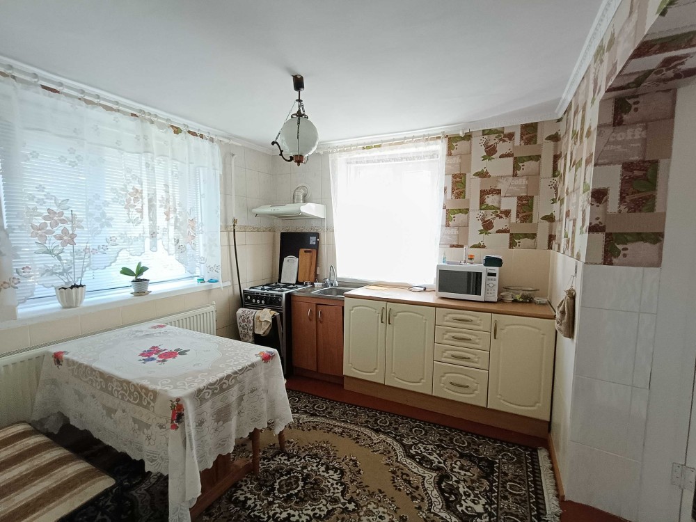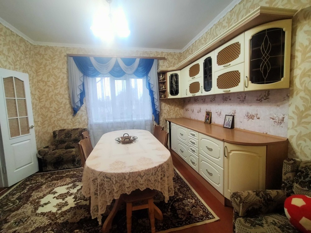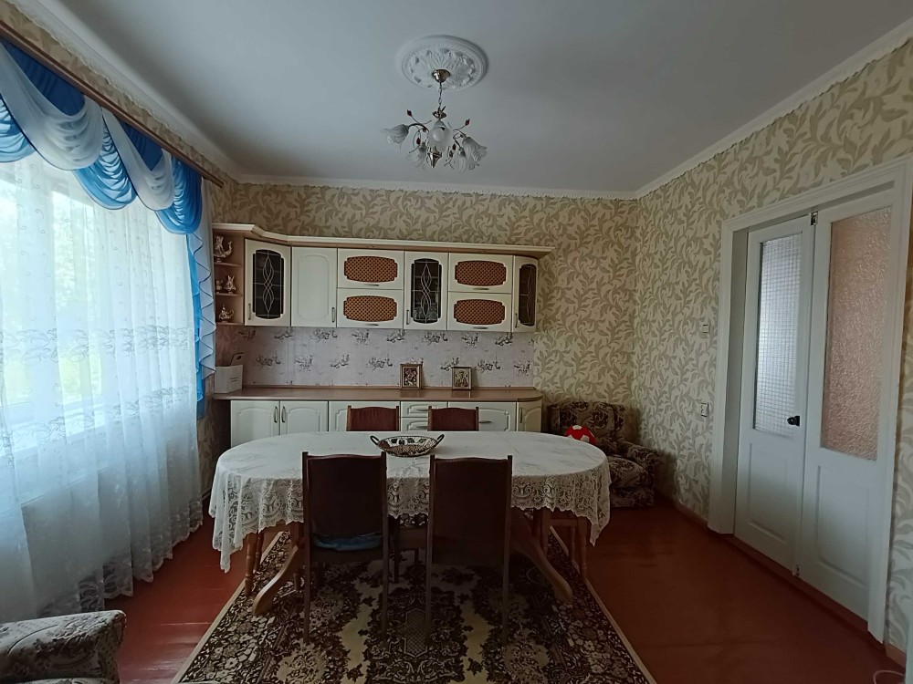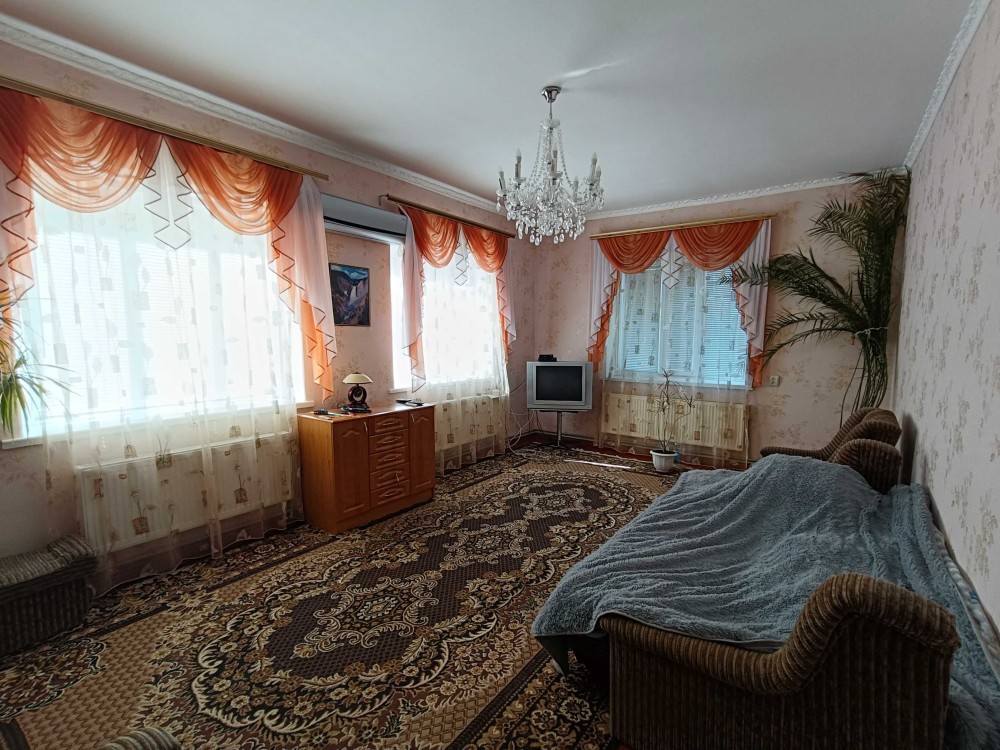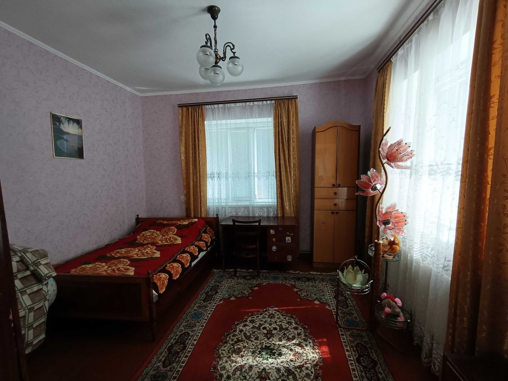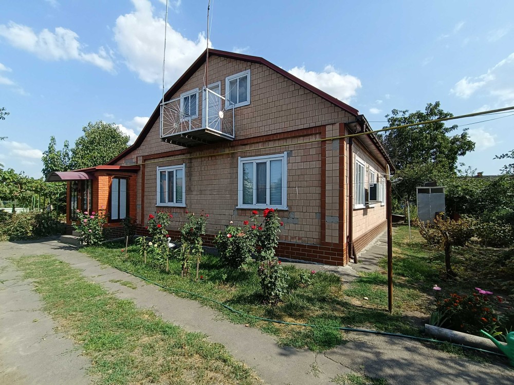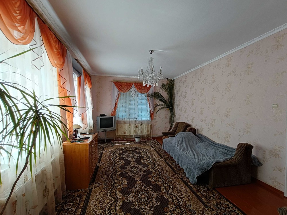 Цегляний будинок на високому цоколі з мансардним поверхом та підвалом р-н 6 Школи. Площа загальна – 132,6 м2, житлова – 67,8 м2. Кухня столова – 23,2 м2. Дах будинку: багатоскатний з новою металочерепицею. Вікна: всі енергозберігаючі склопакети.