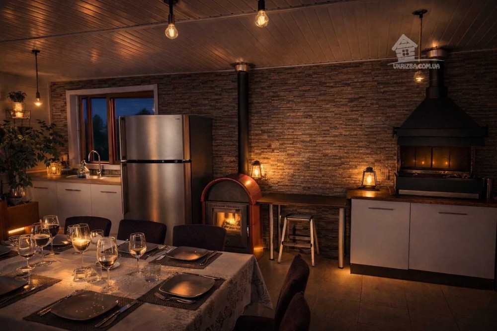 • окрема опалювана BBQ-зона з каміном, кухнею та столом на 10 осіб