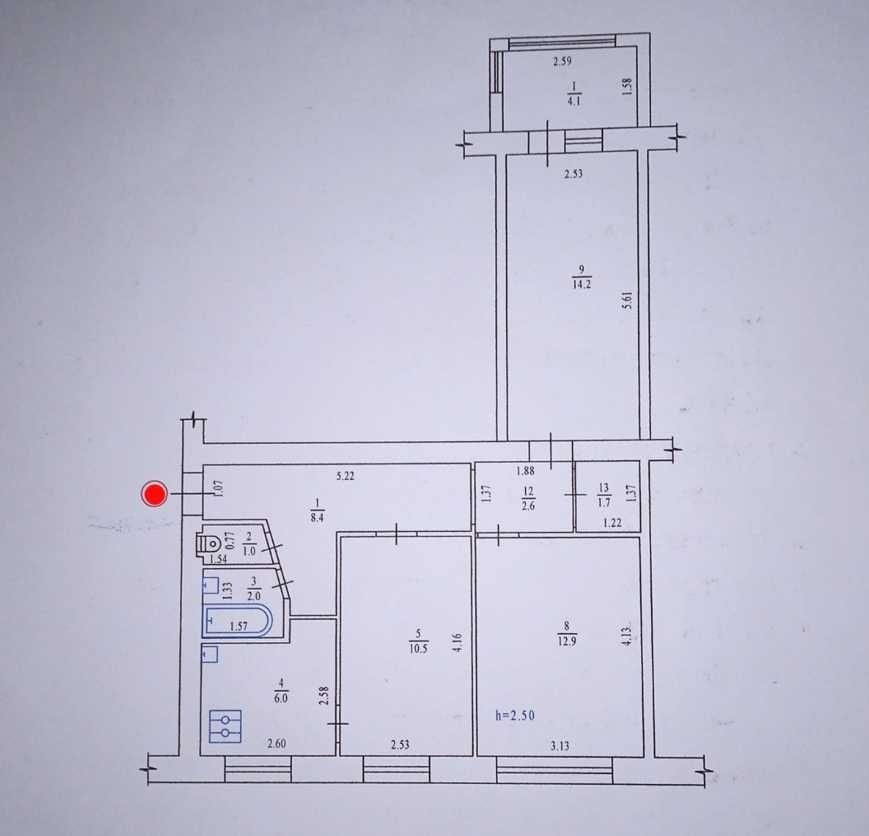 Загальна площа - 63 м кв, кухня - 6 м кв. Квартира не кутова, роздільний санвузол.