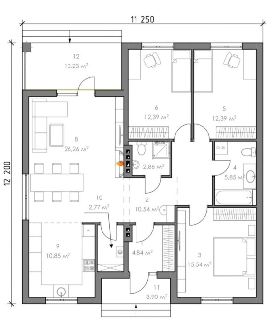 • Общая площадь 105 м2