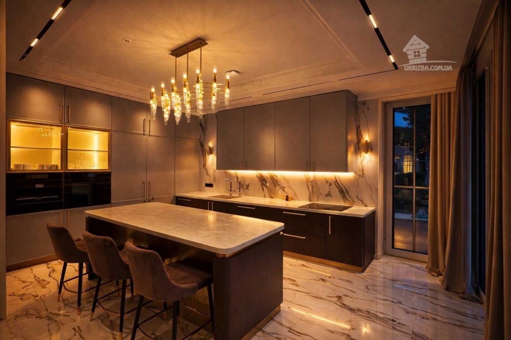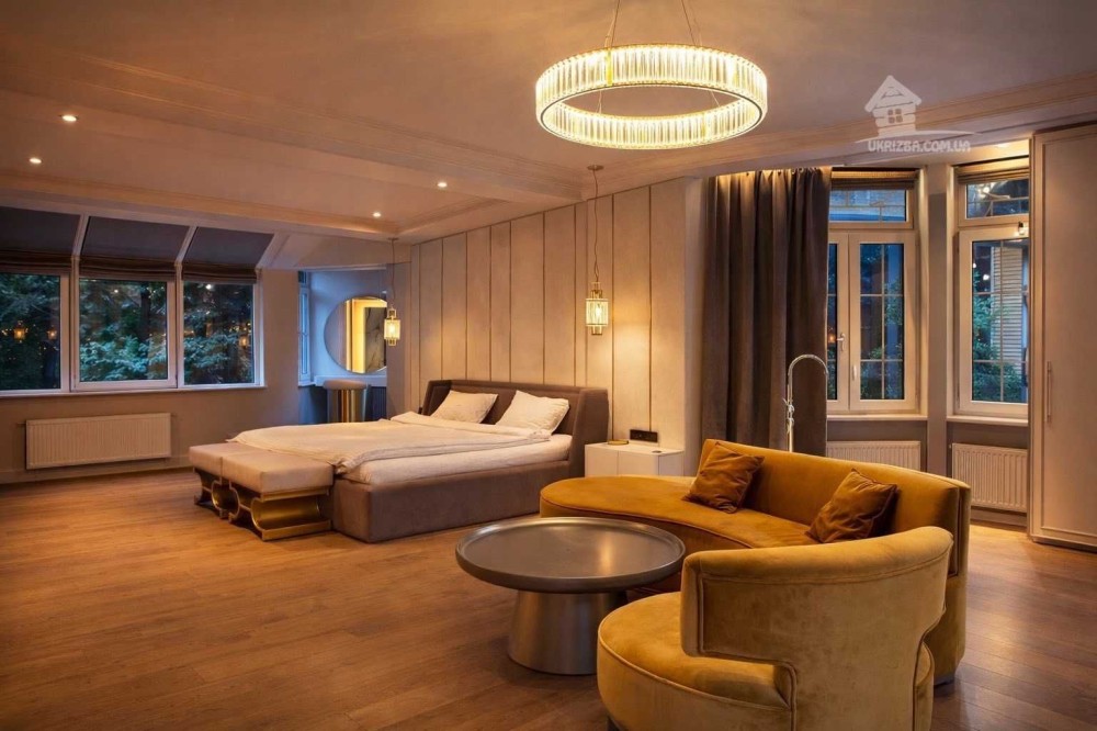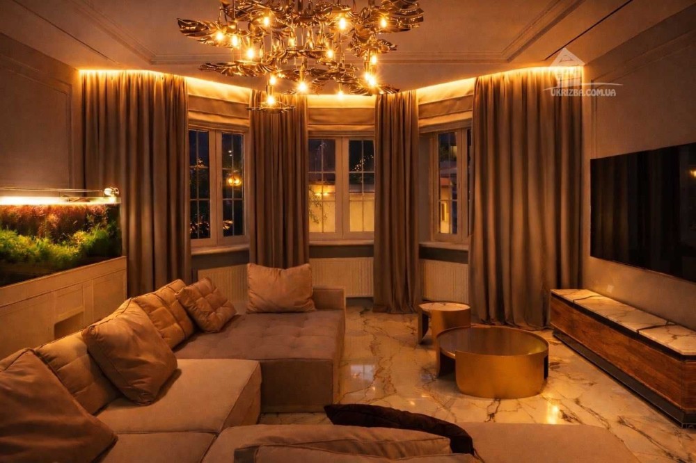 Простора вітальня, кухня, зона їдальні, 4 спальні, 3 санвузла, кабінет ,сауна, басейн, погріб, гараж.