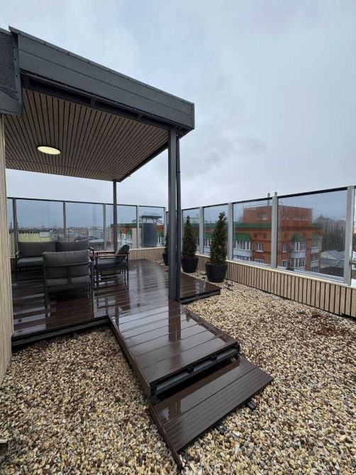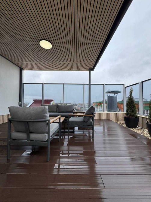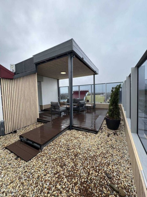 Має власну криту терасу. Дві кімнати. Вітальня студія, і окрема спальня.