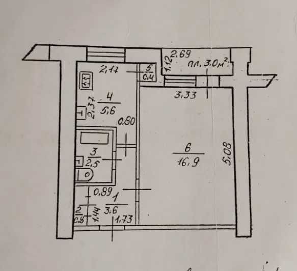 • Площадь кухни 5.6 м2