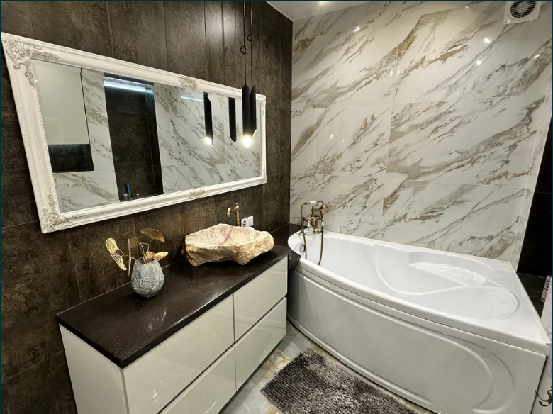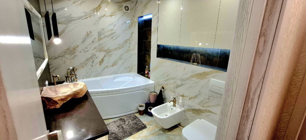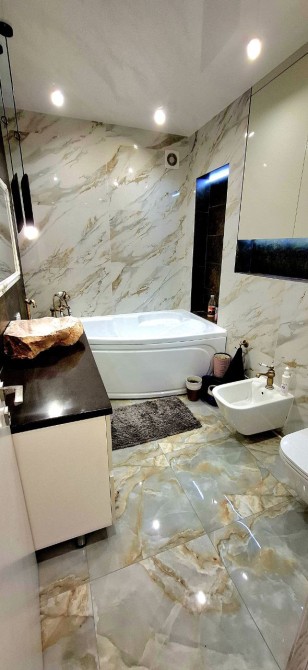 В квартирі завершено всі чорнові роботи, включаючи підготовку стін, стель до подальших чистових обробок. Встановлено електричні та сантехнічні комунікації, підготовлено стіни до фарбування чи поклейки шпалер. По всій квартирі зроблена тепла підлога. С/в- сумісний, встановлена душова кабіна. Індивідуальне газове опалення. Створено ОСББ.