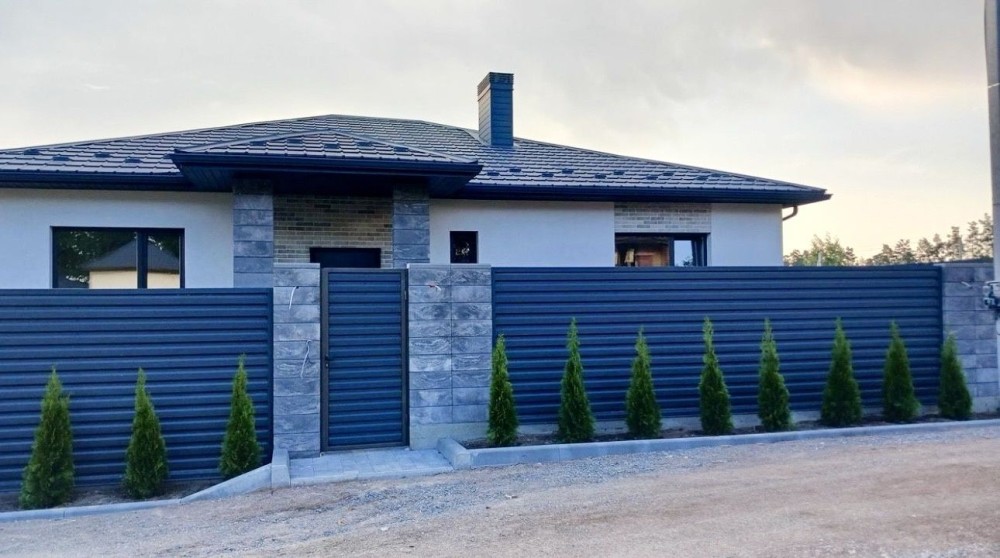 Вздовж паркану висаджені туї.