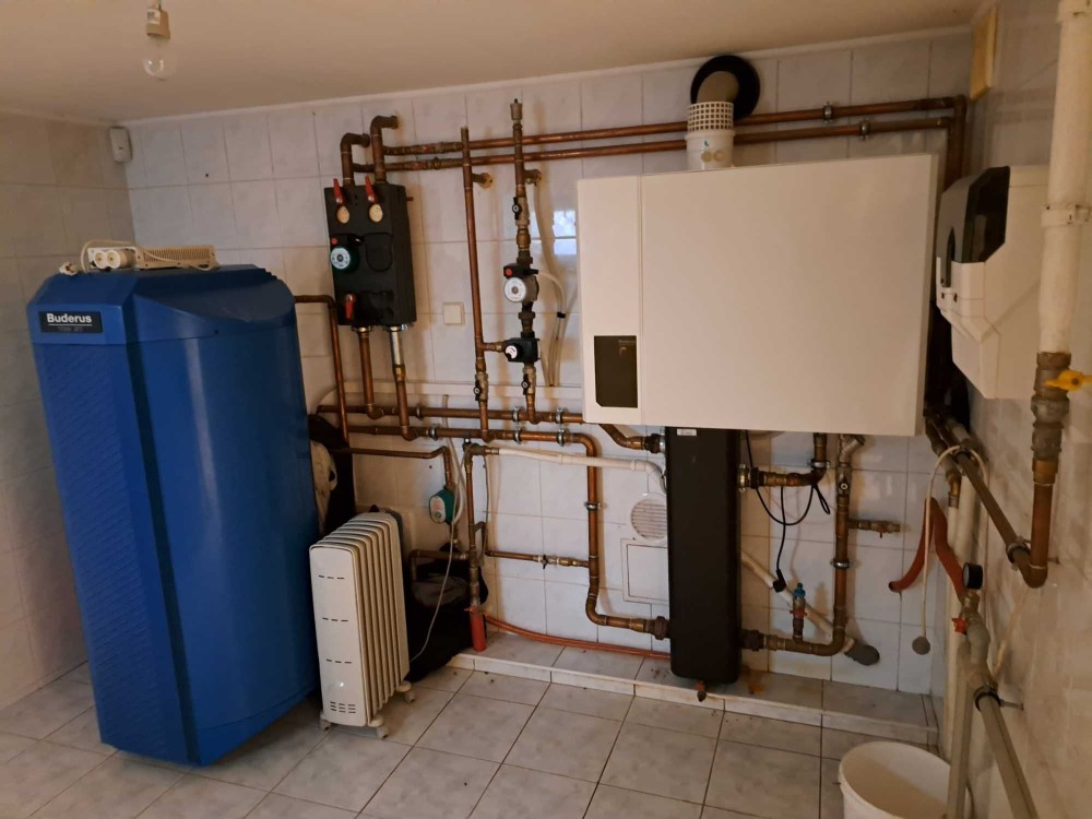 5. Газове опалення , встановлені радіатори Kermi та водяний підігрів підлоги. Встановлений конденсаційний котел фірми Buderus.