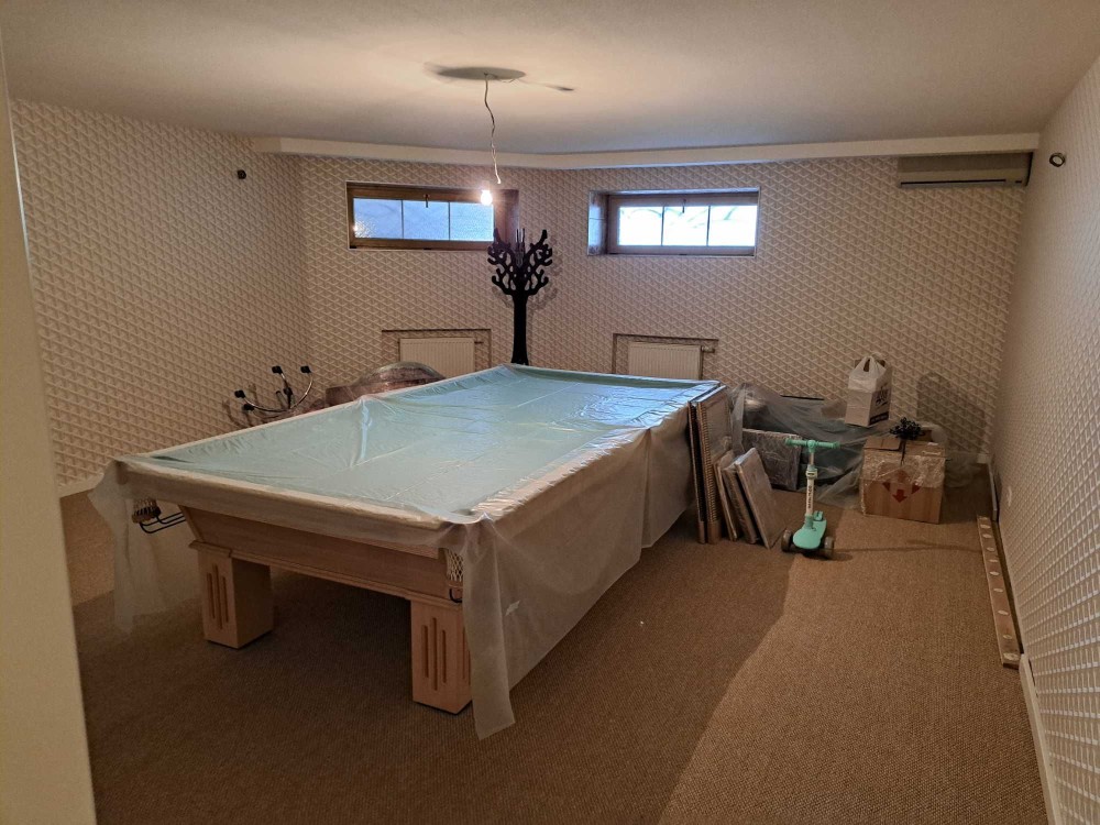 3.Будинок з червоної цегли , товщина стін цокольного поверху 64 см. + 5 см. утеплення , товщина стін першого та другого поверхів 51 см. + утеплювач " Paroc " товщиною 10 см. Озлоблення стін цоколя ( декоративна штукатурка REVKO ) , оздоблення стін будинку сіліконова штукатурка Caparol . Покрівля ( композитна черепиця , виробник Gerard).