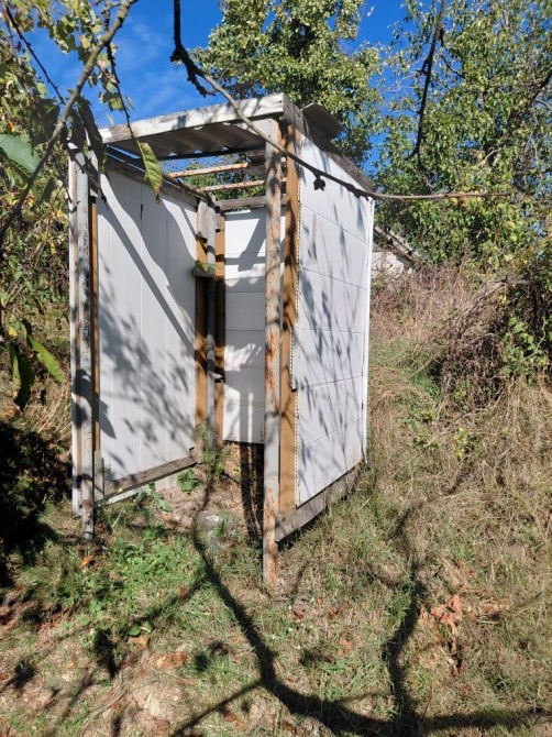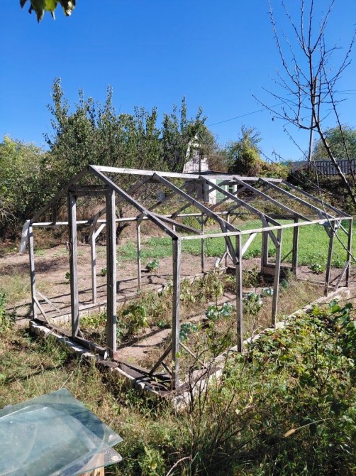 На ділянці одноповерховий будинок з грубою та погрібом, господарчі споруди, теплиця.