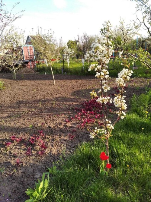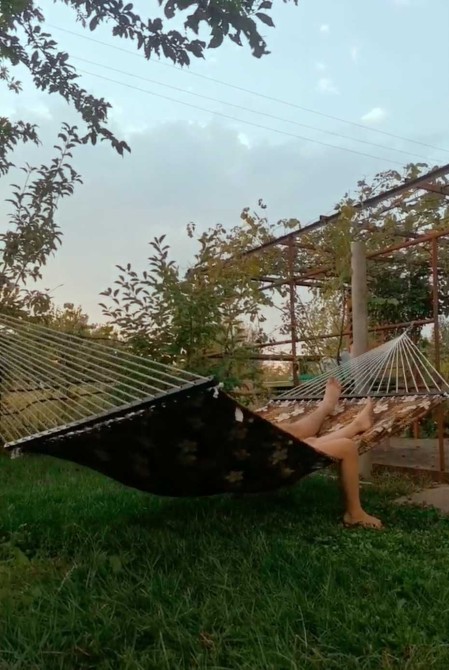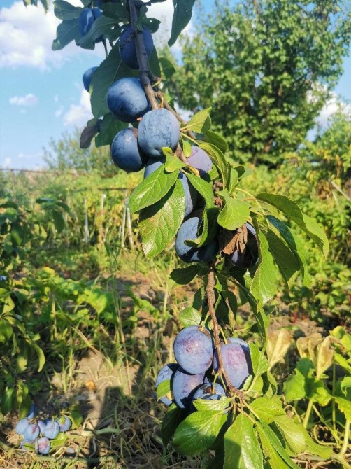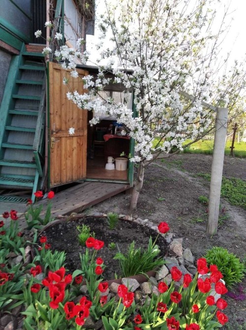 На ділянці багато фруктових дерев: абрикоси, слива, груша, айва, яблука. Велика лоза винограду. Ділянка із садом вкрита травою. Дуже затишно влітку відпочивати на гамаку між дерев.