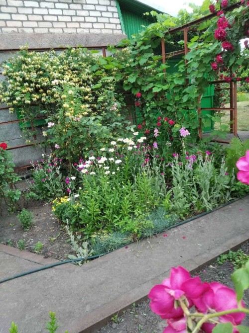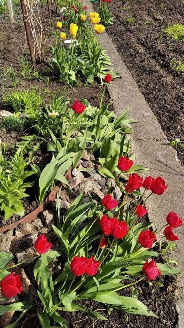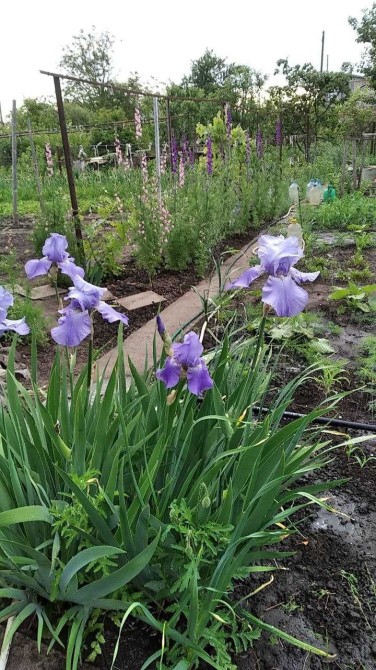 Частина ділянки — під город, доглянута, із прокладеними бетонними доріжками.