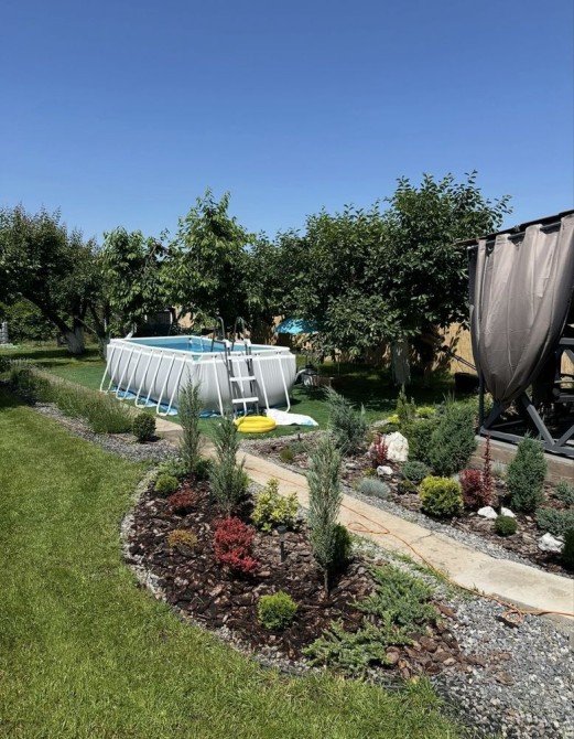 В будинку зроблено якісний ремонт. На ділянці висаджені фруктові дерева та хвойні рослини, якісний газон.