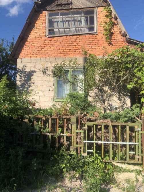 Садовий будинок: червона цегла, груба, дві кімнати, кухня, горище.