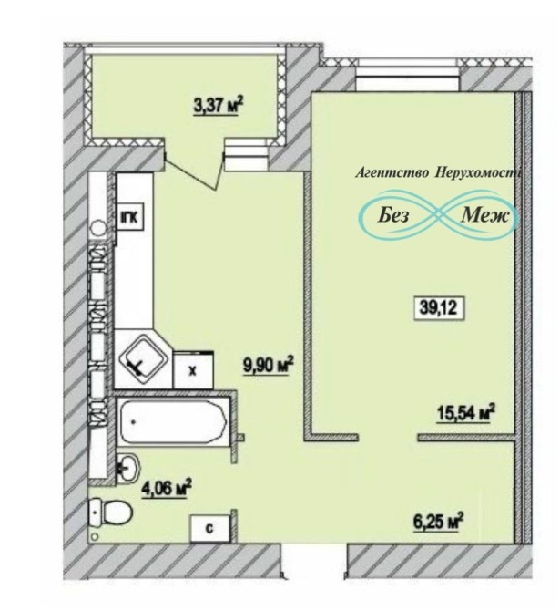 • Общая площадь 39 м2