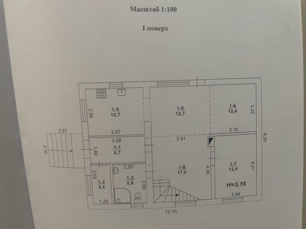 Коробка червона цегла, добудовано ракушняком частину першого поверху і мансарду h 1.6м, встановлені вікна і велика розсувна система-вихід на терасу, будинок утеплений, дах цементно-піщана черепиця, підведено воду, та електрику 30 кВт.