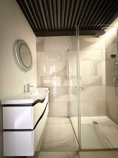 Другий поверх: дві окремі дитячі з великими двоспальними ліжками, третя кімната з односпальним ліжком з виходом на терасу та на третій рівень, тераса з видом на двір, великий санвузол з душовою кабіною та величезною круглою ванною.