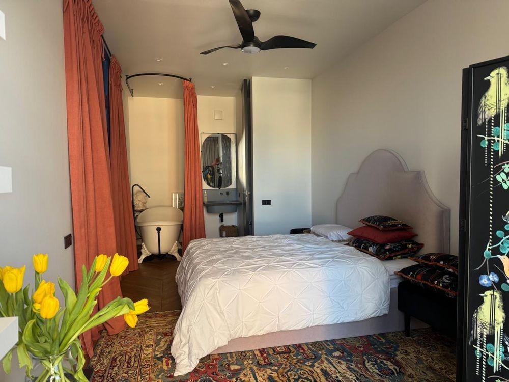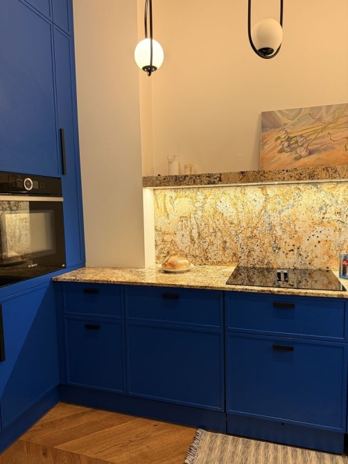 Кухня закривається, є потужна витяжка , прально- сушильна машина з функцією хімчистки, тепла підлога