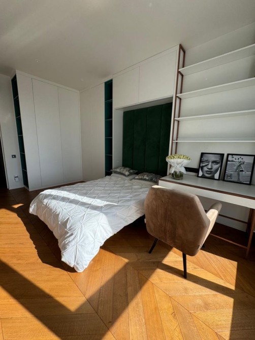 Пропонується в оренду сучасна квартира на Печерську ( вул. М. Омеляновича-Павленка (колишня Суворова), 7). Квартира із сучасним ремонтом. Кімната: двоспальне ліжко, розкладний диван, комод. Кухня укомплектована необхідною технікою (варильна поверхня, духова шафа, посудомийна машина, холодильник,посудомийна машина, мікрохвильова піч). У передпокої простора шафа-купе. Санвузол : душова кабіна, пральна машина, бойлер. З кімнати вихід на відкритий балкон, де відкривається чудовий краєвид на Печерськ. До ст. метро Арсенальна 10 хв. пішки. Вартість оренди 18000 грн. Умови оренди: оплата за два місяці та послуги рієлтора (50%). комісія: 50%