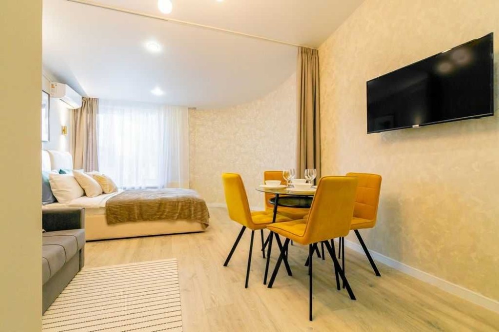 Пропонуємо подобову оренду абсолютно нової студії з дизайнерським ремонтом в Центрі міста, за адресою вулиця Незалежної України 68А. зупинка Сталеварів (в районі фонтану Життя)