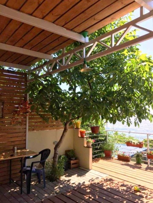 На двух уровнях веранды с прмым видом на море.