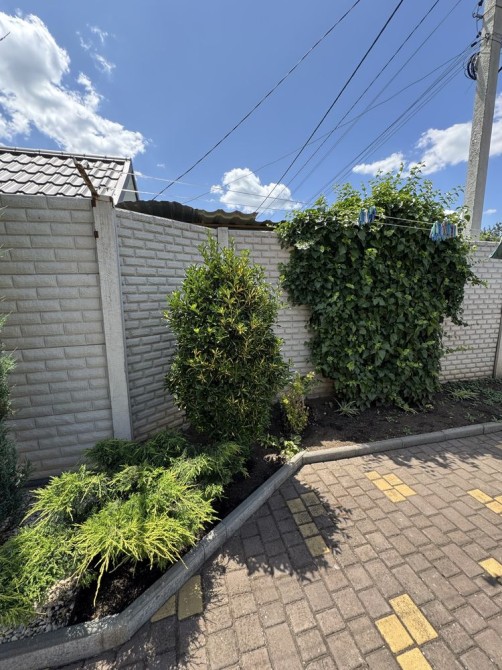 Земельный участок 5сот правильной формы приватизирован, с зоной отдыха, засажен-можжевельник, туя, розы, плющ; капитальная беседка с постройкой для хозяйственных принадлежностей, качели для отдыха.