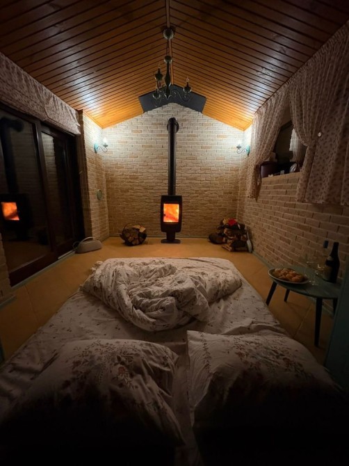 Дом со сруба строили для себя, учитывались все моменты, чтобы надолго и с комфортом. Есть также навес для машины. Домик с камином для отдыха, погреб.